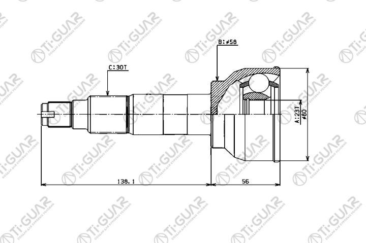 ШРУС наружный /TI-GUAR для SUBARU LEONE EA82 1984-1992 /23*58*30; TG-9106; 23221GA232 23221GA233 CO7112 FU006