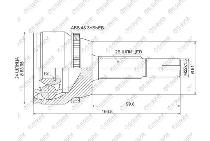 ШРУС наружный /правый /TI-GUAR для Toyota Camry 2001- ACV30 2.4L 2AZFE; 24*61*26; TG-95104Z48; (TO-081A TO-104A48 ) 4342028030 CO7522A